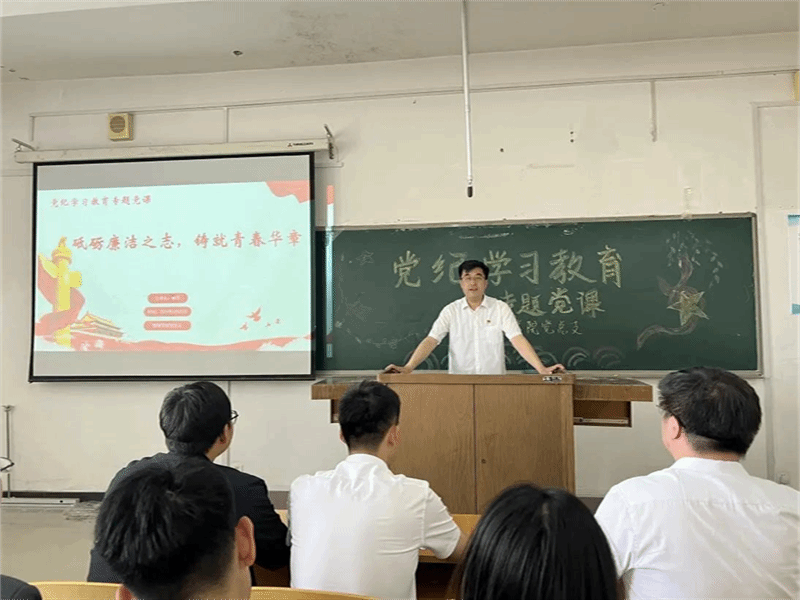 为深入学习贯彻习近平总书记关于全面加强党的纪律建设的重要论述,深刻认识《中国共产党纪律处分条例》主旨要义,推进党纪学习教育走深走实,加强学院师生党员的纪律意识,6月20日,在业精楼中501教室,伟德国际victor1946党总支书记鲍宇做题为“砥砺廉洁之志,铸就青春华章”的党纪学习教育专题党课。本次专题党课由伟德国际victor1946学生第一党支部书记张诗彤主持,伟德国际victor1946师生党员参加。