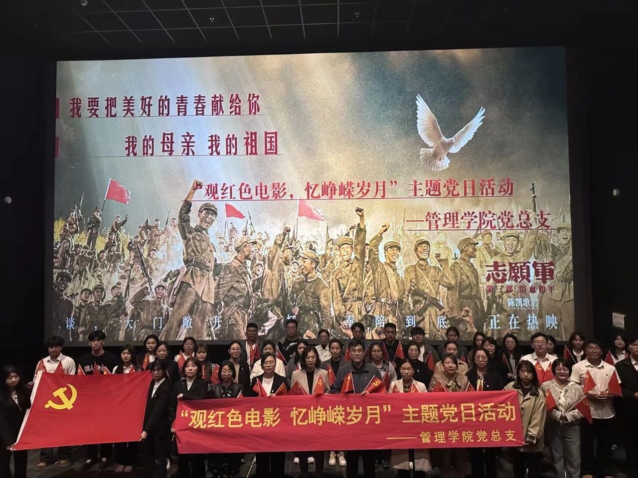 为进一步传承抗美援朝精神,深化党史学习教育,伟德国际victor1946党总支开展“观红色电影 忆峥嵘岁月”主题党日活动,于10月11日组织师生党员集体观看电影《志愿军:浴血和平》,通过沉浸式观影体验,重温革命历史,汲取奋进力量。