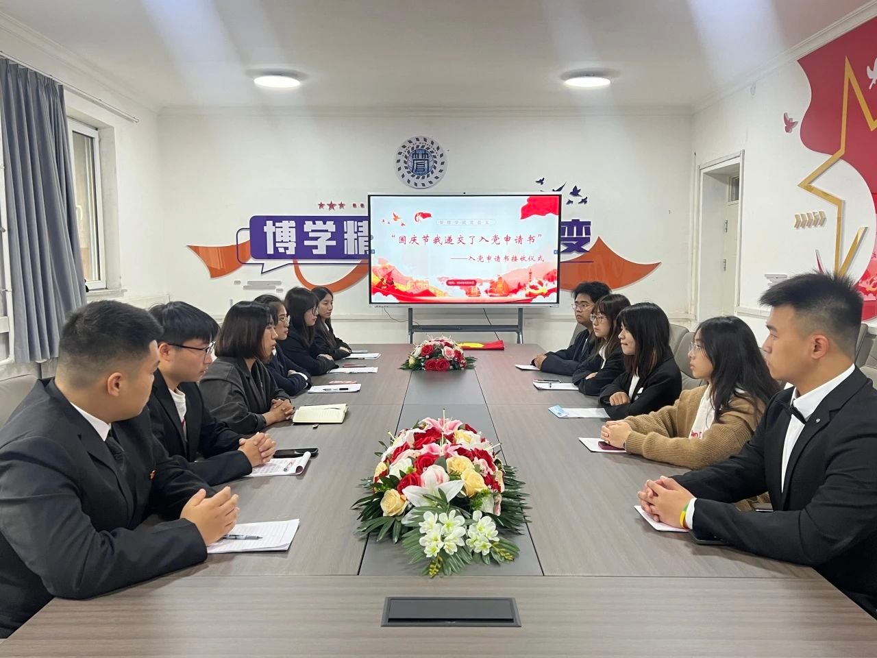 党旗所指就是青年所向,此次入党申请书接收仪式旨在夯实基层党建基础,为党的发展注入新鲜血液,更是为了端正管理学子入党动机,磨炼意志品格,努力学习理论知识,争取早日站在党旗下宣誓,成为一名合格的中国共产党党员!