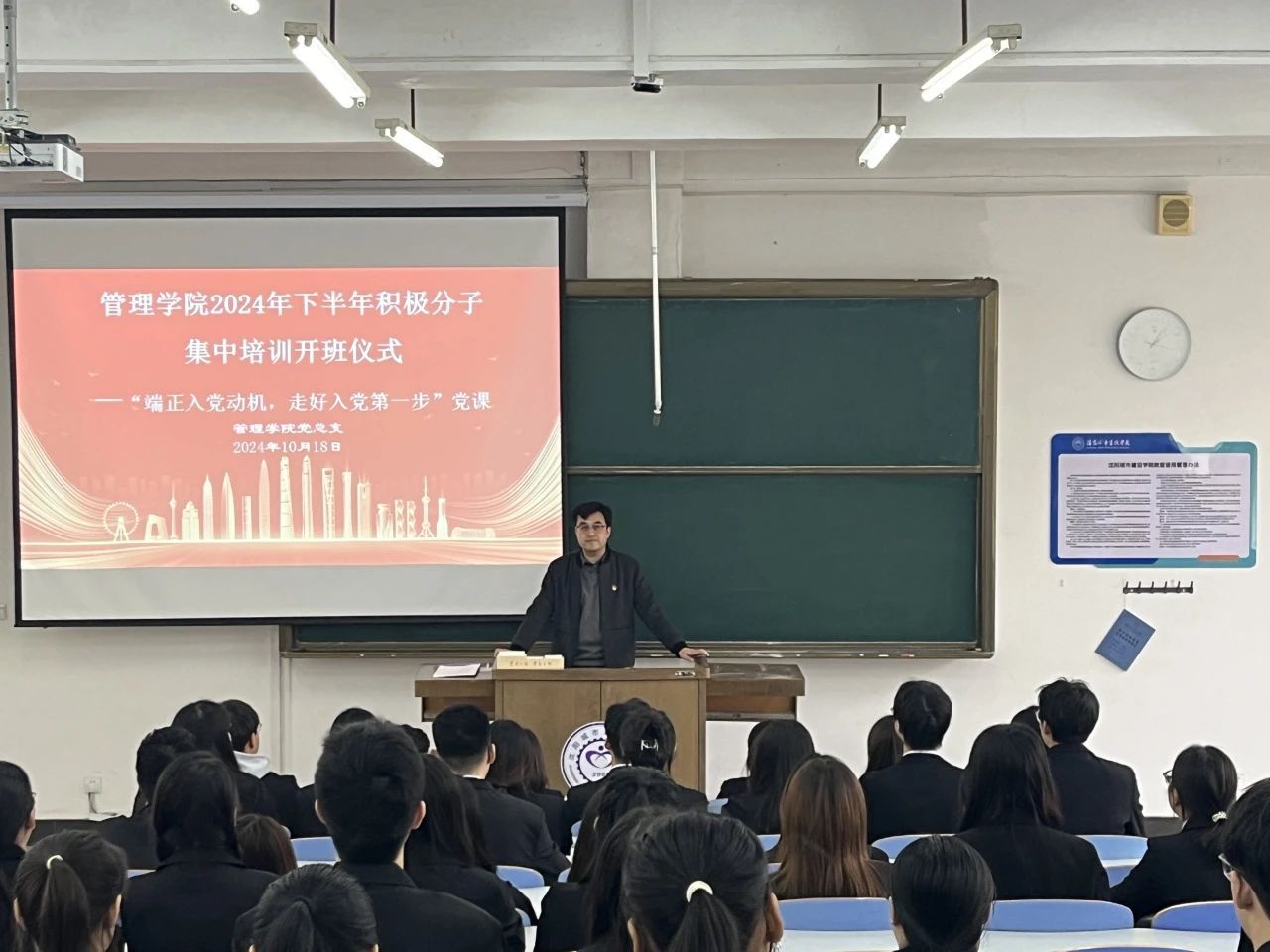 为深入学习党的二十届三中全会精神,做好党员发展教育培训工作,强化入党积极分子的思想觉悟和理论素养。根据我校《关于开展2024年下半年入党积极分子集中培训的通知》的相关要求,10月18日下午,伟德国际victor1946党总支在业精楼A403举办2024年下半年入党积极分子培训班开班仪式。学院党总支书记鲍宇出席会议并作“端正入党动机,走好入党第一步”的开班报告,会议由学生第二党支部书记孙斯慧主持,各学生党支部书记及本期全体入党积极分子参加培训。