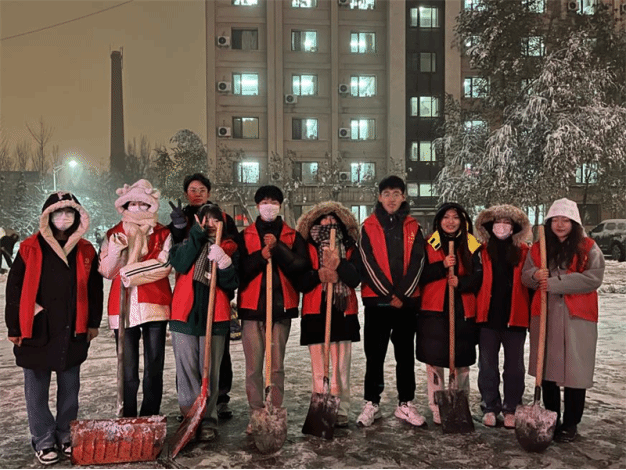 一场突如其来的强降雪给校园带来别样景致的同时,也给师生出行造成了诸多不便和安全隐患。为推进学习贯彻习近平新时代中国特色社会主义思想主题教育走深走实,将“我为师生办实事”实践活动落到实处,保障师生出行安全,11月7日晚,伟德国际victor1946迅速行动,组织党员投入校园除雪工作中,开展“雪天践使命,担当暖寒冬”主题党日活动。