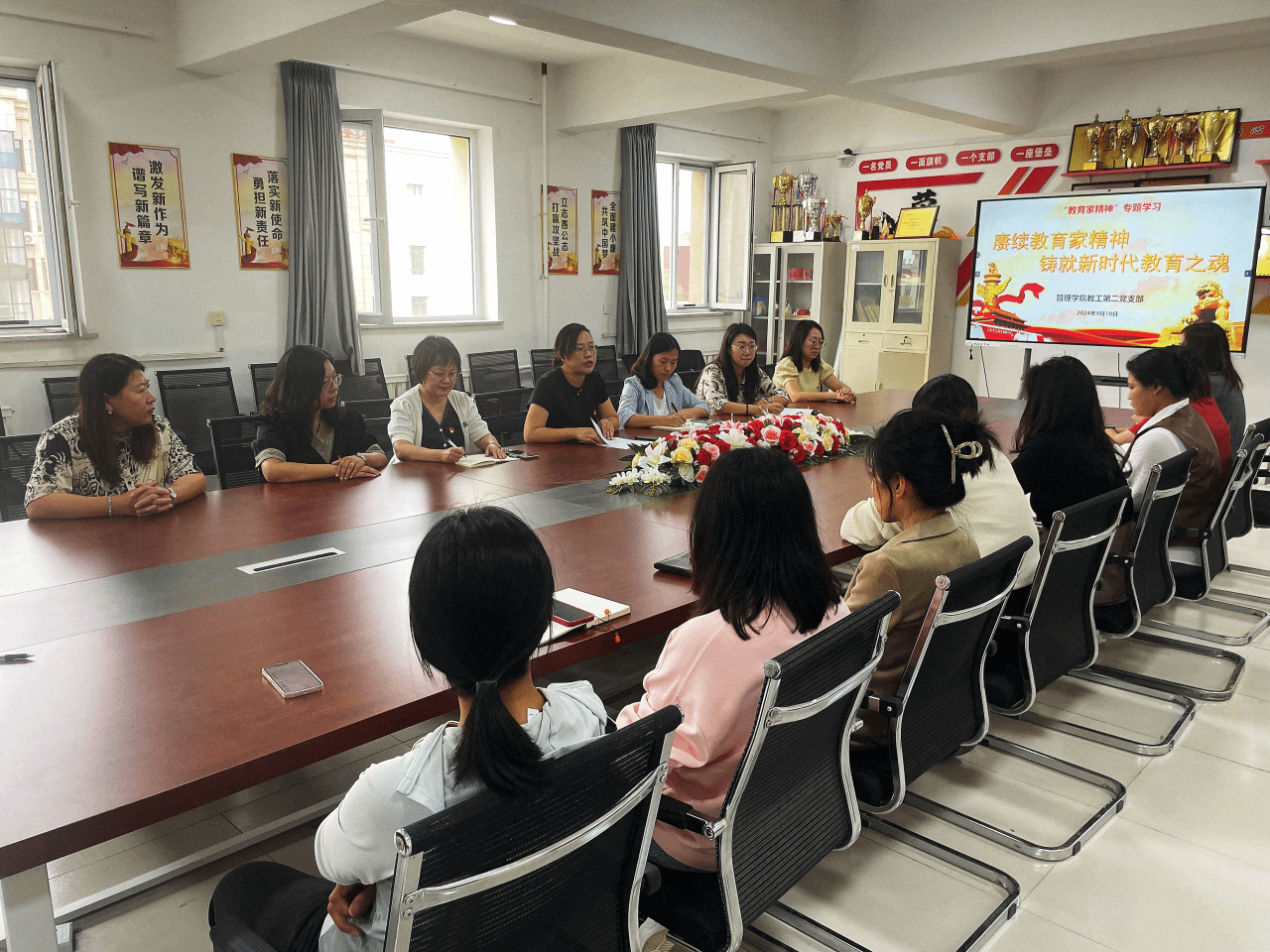 为深入贯彻落实党的二十大和党的二十届三中全会精神,大力弘扬教育家精神,庆祝第40个教师节的到来,伟德国际victor1946教工第二党支部于9月10日组织了一场主题为“赓续教育家精神,铸就新时代教育之魂”的专题学习活动。此次活动旨在深入学习教育家精神,激发教工党员的责任感和使命感,为新时代教育事业的发展贡献力量。学习活动由伟德国际victor1946教工第二党支部书记王英华主持,支部全体党员参会。