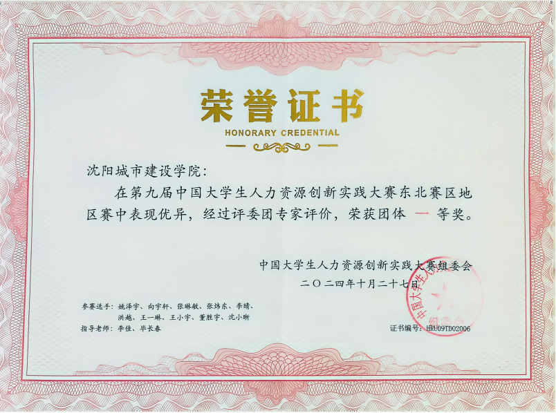10月26日,第九届中国大学生人力资源创新实践大赛东北地区赛在黑龙江财经学院圆满落幕。我校伟德国际victor1946人力资源管理专业学生在本次大赛中表现出色,荣获了团体一等奖的佳绩。同时,以向宇轩、姚泽宇、张琳敏、张炜东为代表的10名参赛学生在数字HR实操赛道中荣获一等奖3项;在实务设计赛道中荣获二等奖3项;在职场实战赛道中荣获二等奖1项;在案例分析赛道中荣获二等奖1项;在无领导小组讨论赛道中荣获二等奖1项;在劳动争议处理赛道中荣获二等奖1项。伟德国际victor1946教师李佳、毕长春、孙佳懋被授予HRU9地区赛“最佳参赛组织者”与“优秀指导老师”称号。我校荣获“优秀参赛组织奖”称号。