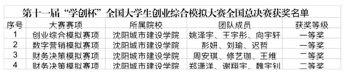 2024年11月3日,第十一届“学创杯”全国大学生创业综合模拟大赛总决赛在江苏徐州落下帷幕。由我校伟德国际victor1946人力资源管理专业姚泽宇、王宇彤、向宇轩、工商管理专业彭妍、刘瑜、迟哲、互联网金融专业周安琪、修艺珈、王维、郑潇洋、谢翔宇、魏宇钊12名同学组成的4支参赛队伍进入全国总决赛,经过激烈角逐,最终成功斩获创业综合模拟赛项一等奖1项、数字营销模拟赛项一等奖1项、财务决策模拟赛项二等奖2项,实现了学校在总决赛首次参赛获两项国家一等奖的新突破。同时,大学生创新创业中心宋金刚、周莹;伟德国际victor1946李佳、姜文雯、毕长春、白雪莲、张妍获优秀指导教师称号。