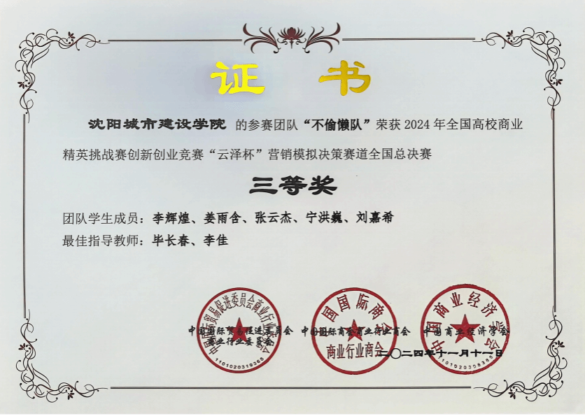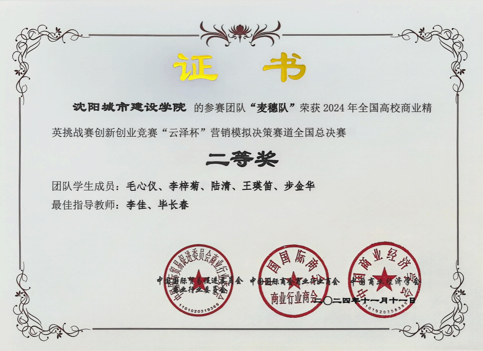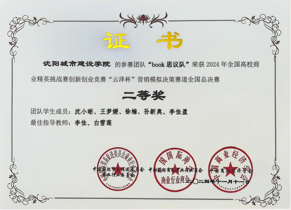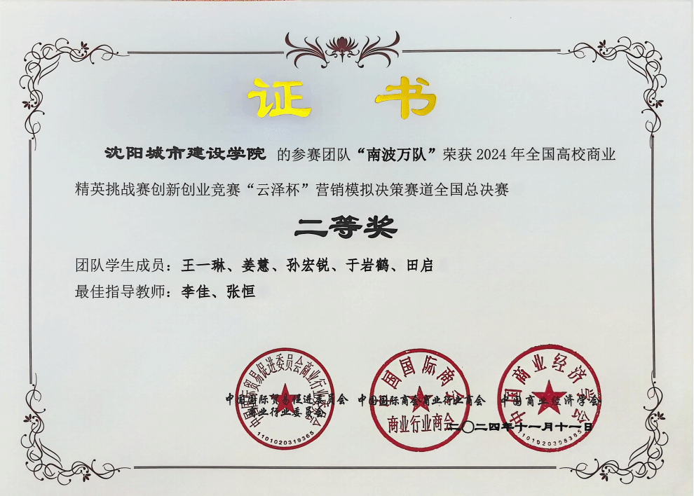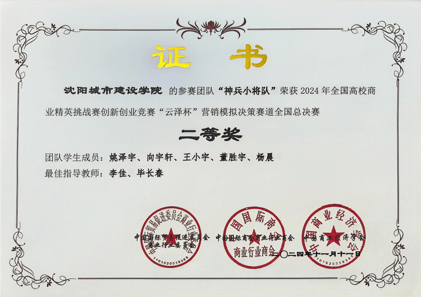 近日,2024年全国高校商业精英挑战赛创新创业竞赛“云泽杯”营销模拟决策赛道全国总决赛圆满落幕。由我校伟德国际victor1946人力资源管理专业姚泽宇、向宇轩、王小宇、董胜宇、杨晨等25名同学组成的5支参赛队伍进入总决赛,在李佳、毕长春、白雪莲等教师的指导下,经过激烈角逐,最终成功斩获二等奖4项、三等奖1项的优异成绩。